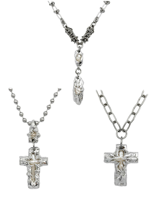Soldered Pearl Irregular Thorns Ball Chain Necklace