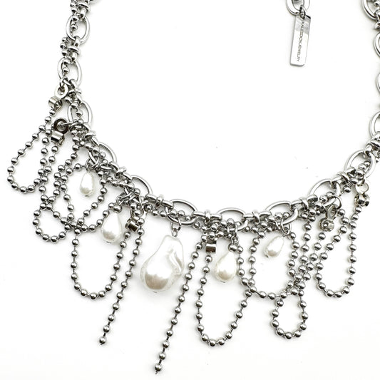 Pearl drop ball chain swirl necklace