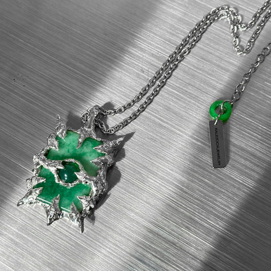 Soldered Jade green stone pendant necklace